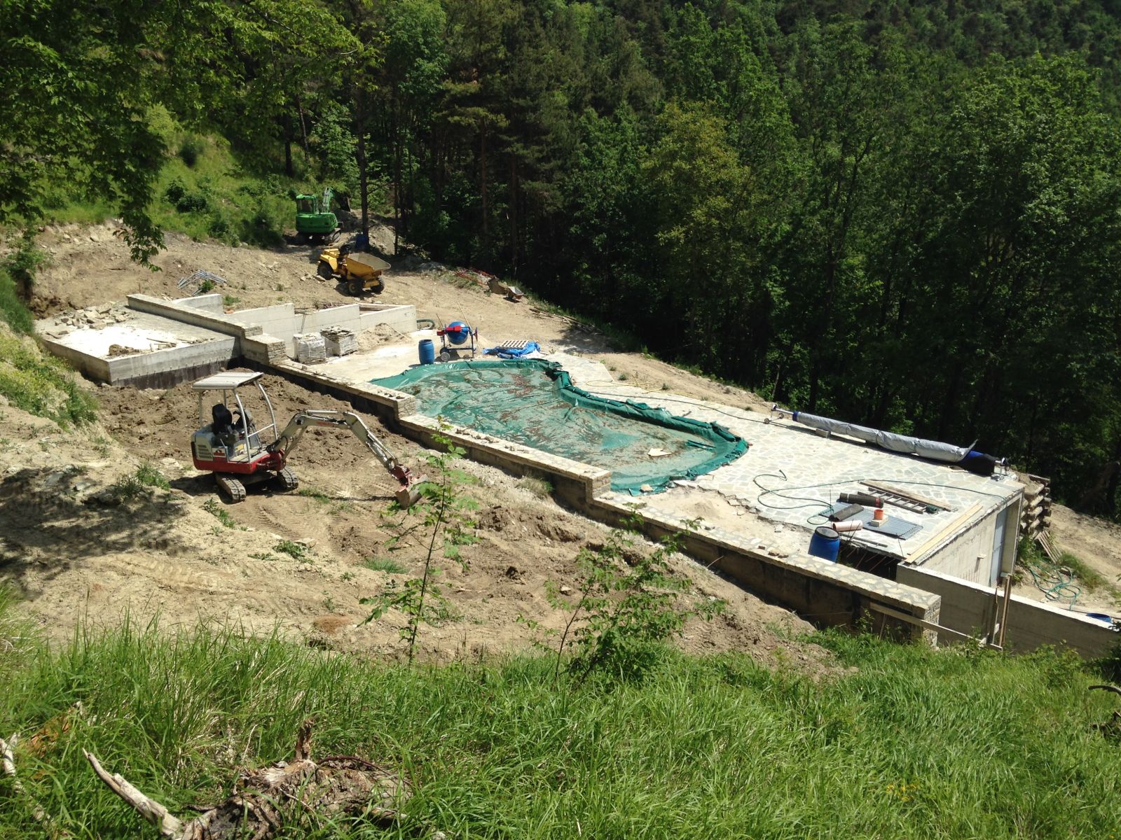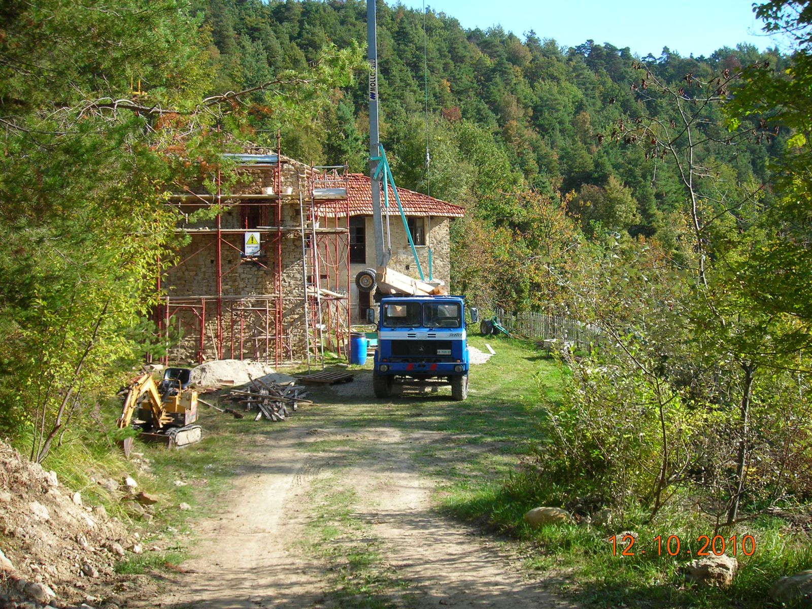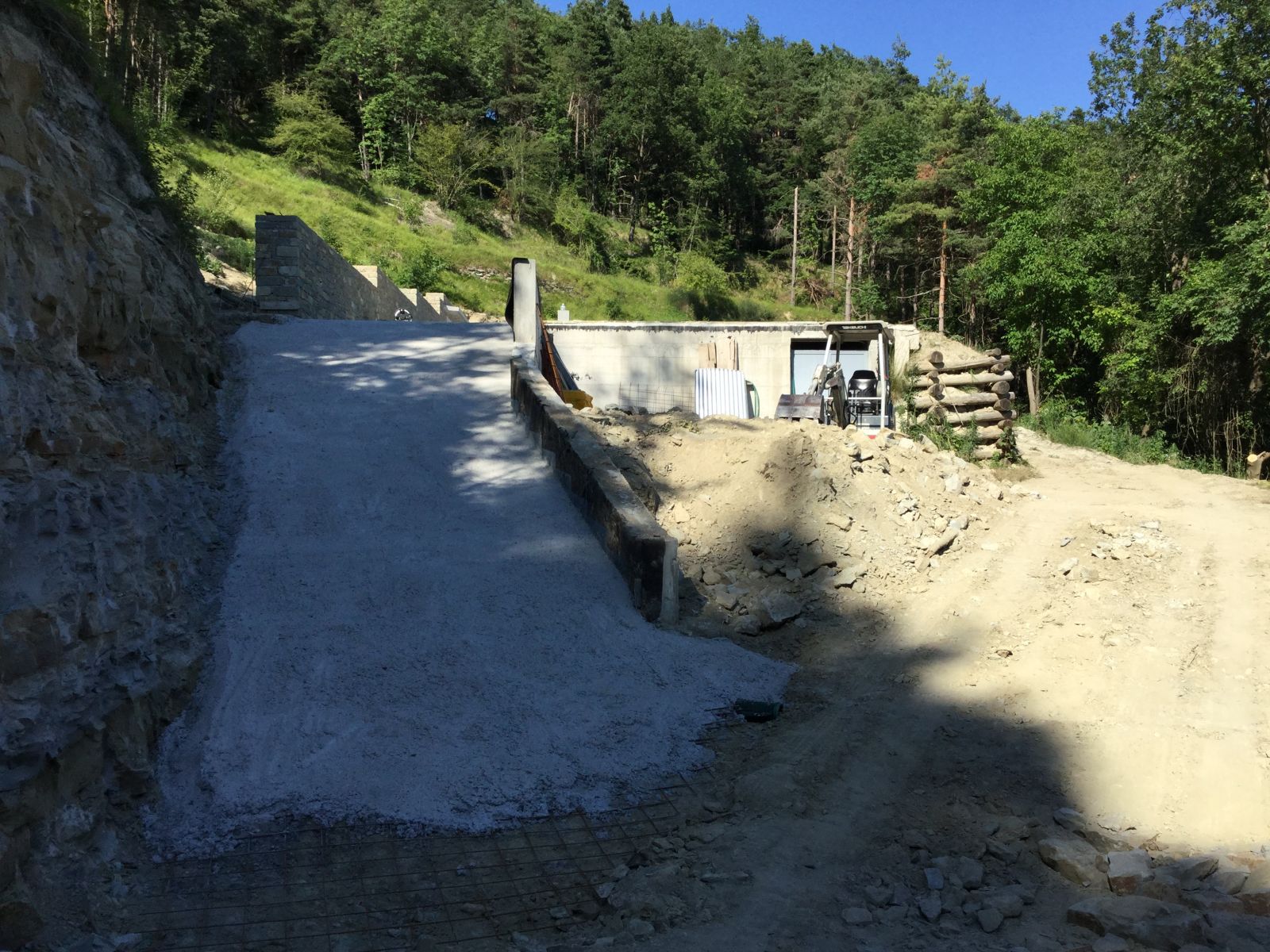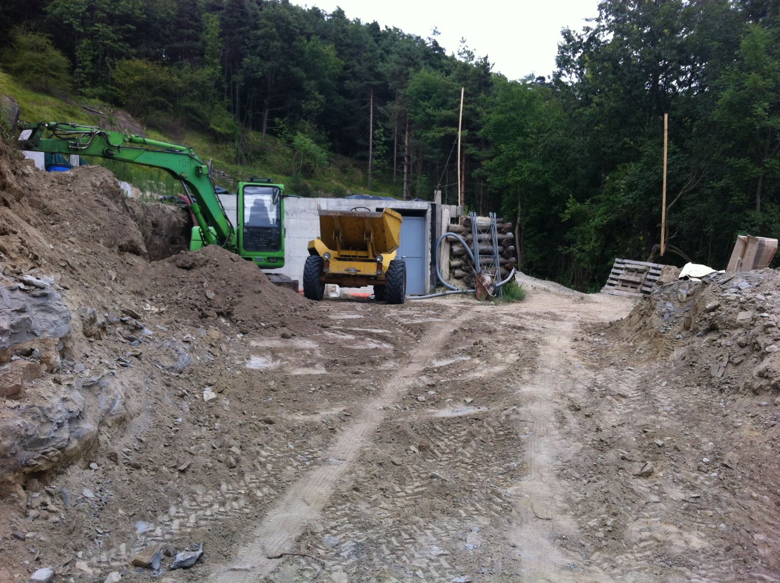 Im Sommer 2010 durfte der erste «eigene» Bagger und Dumper ans Werk. Grosszügigerweise durften wir im Haus unserer Nachbarn zwei Wochen Arbeits-Ferien verbringen, sodass wir ganz nahe bei unserer Baustelle weilten.