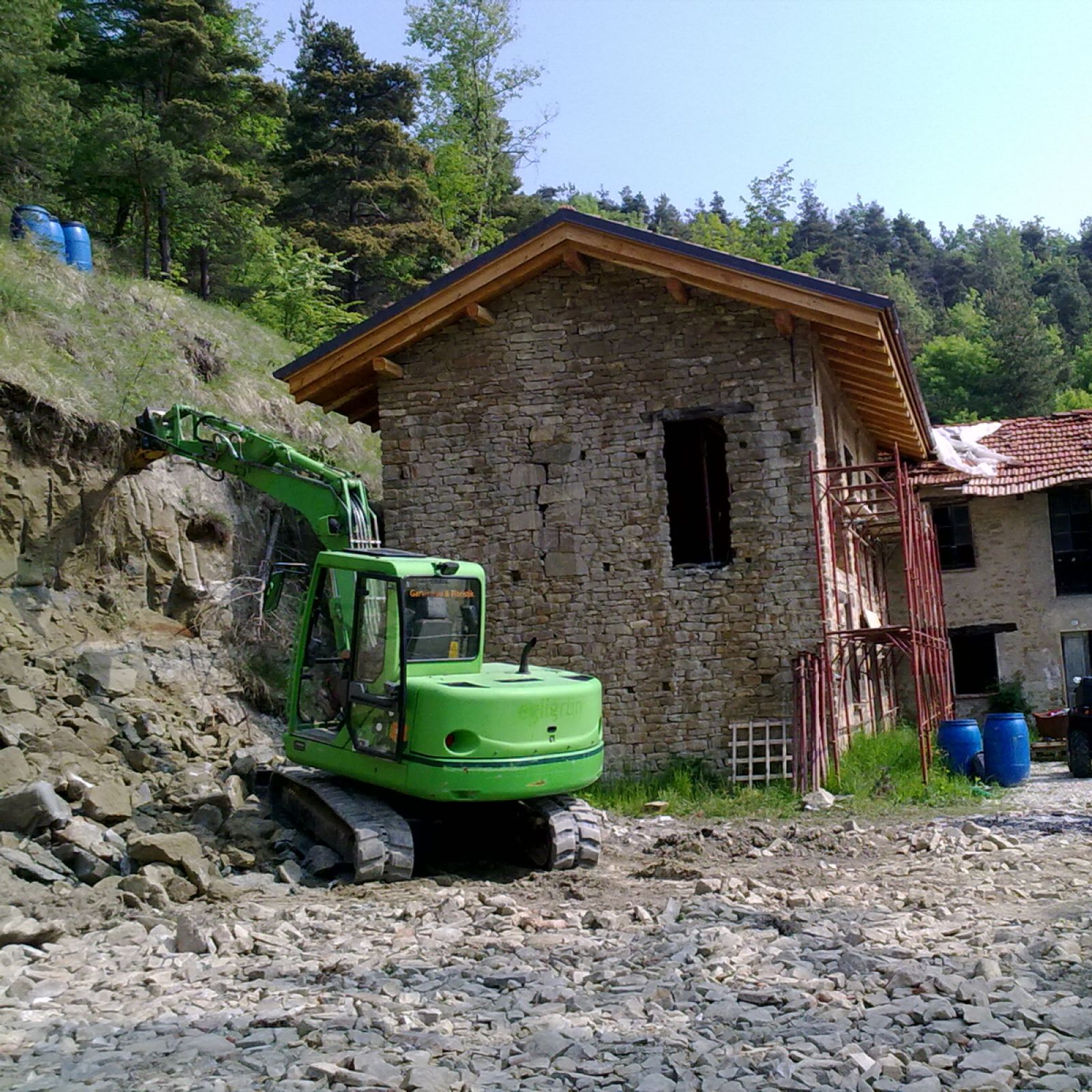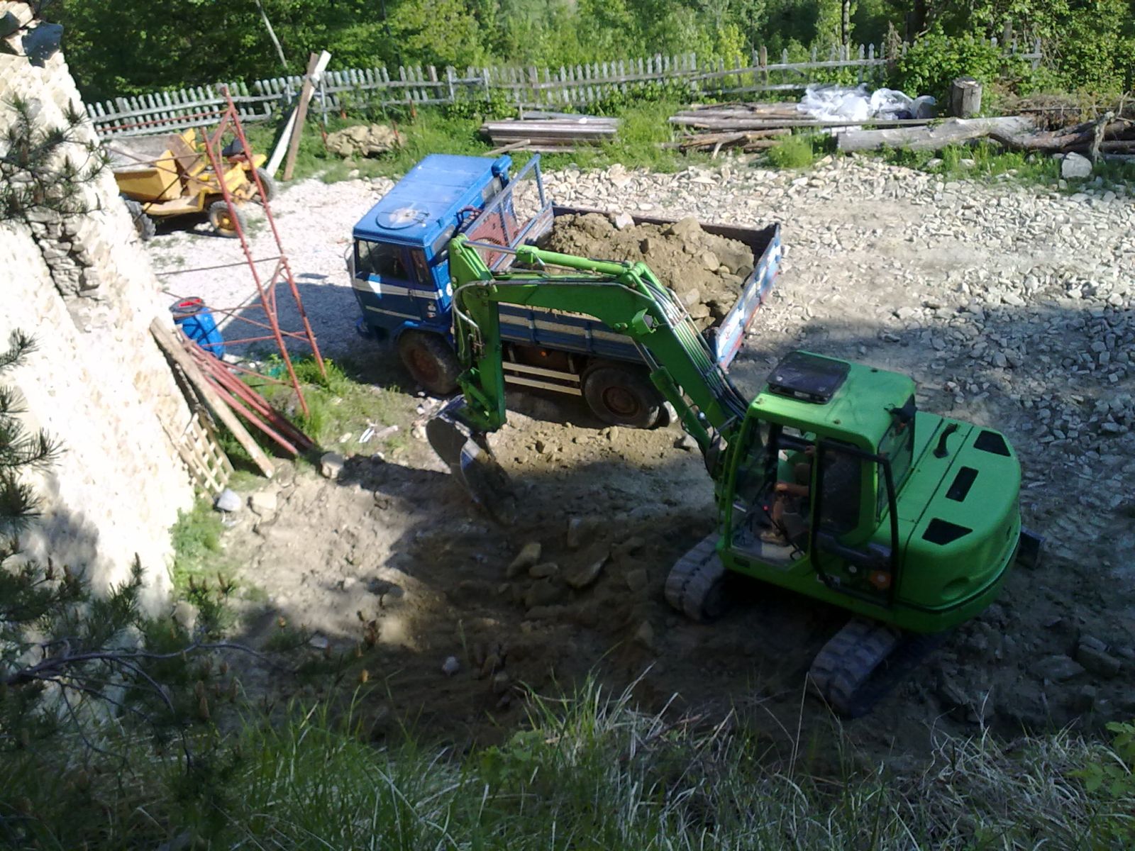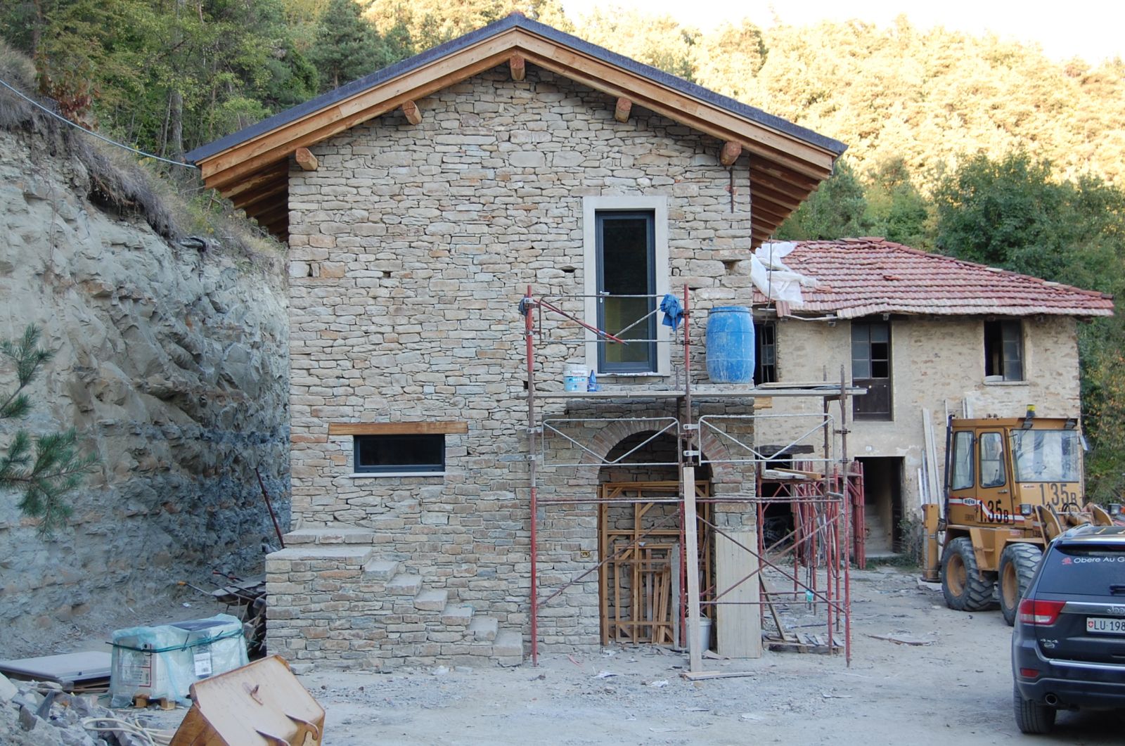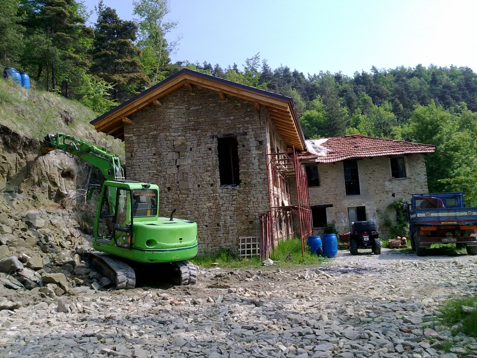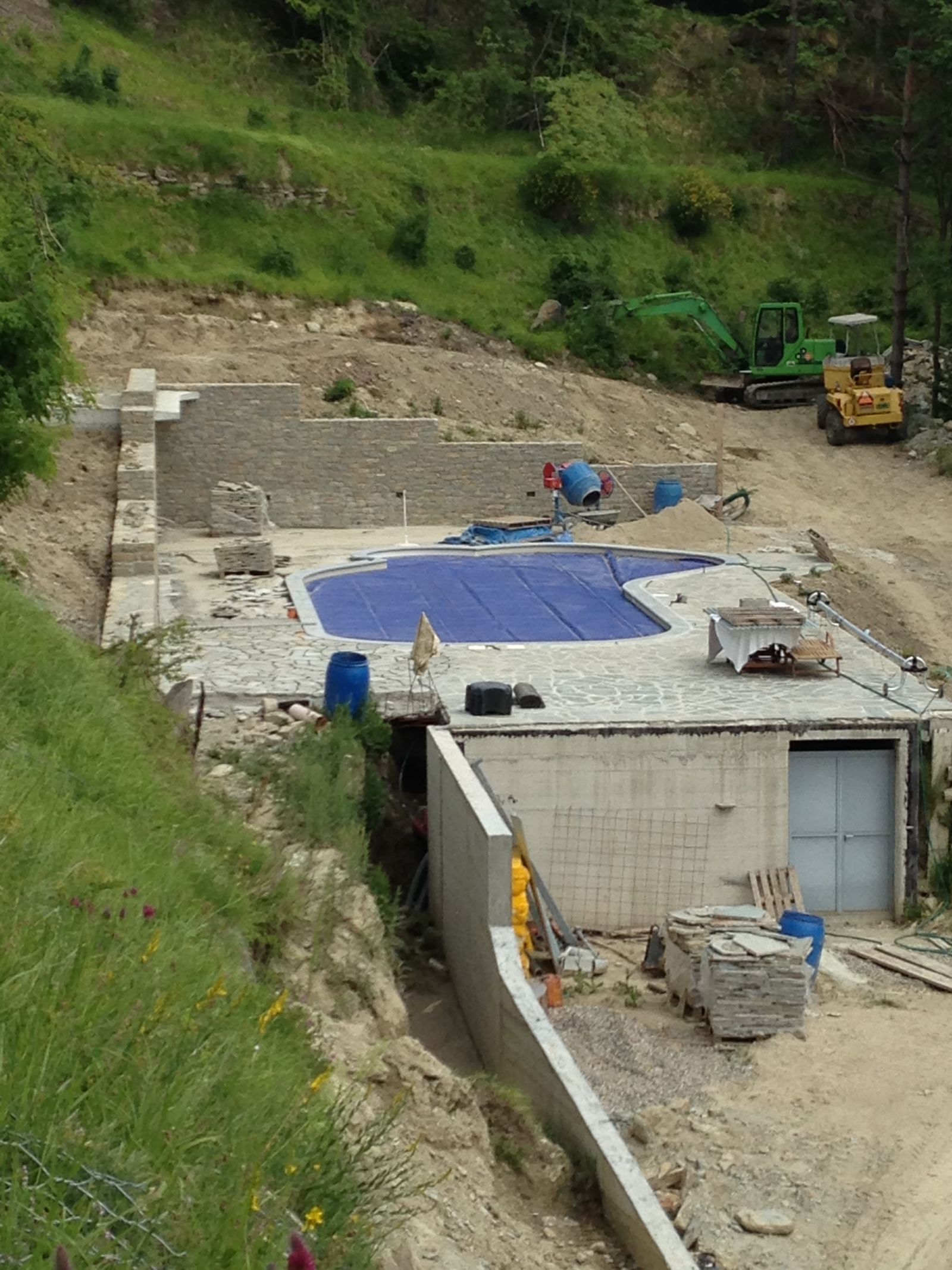 Im Sommer 2010 durfte der erste «eigene» Bagger und Dumper ans Werk. Grosszügigerweise durften wir im Haus unserer Nachbarn zwei Wochen Arbeits-Ferien verbringen, sodass wir ganz nahe bei unserer Baustelle weilten.