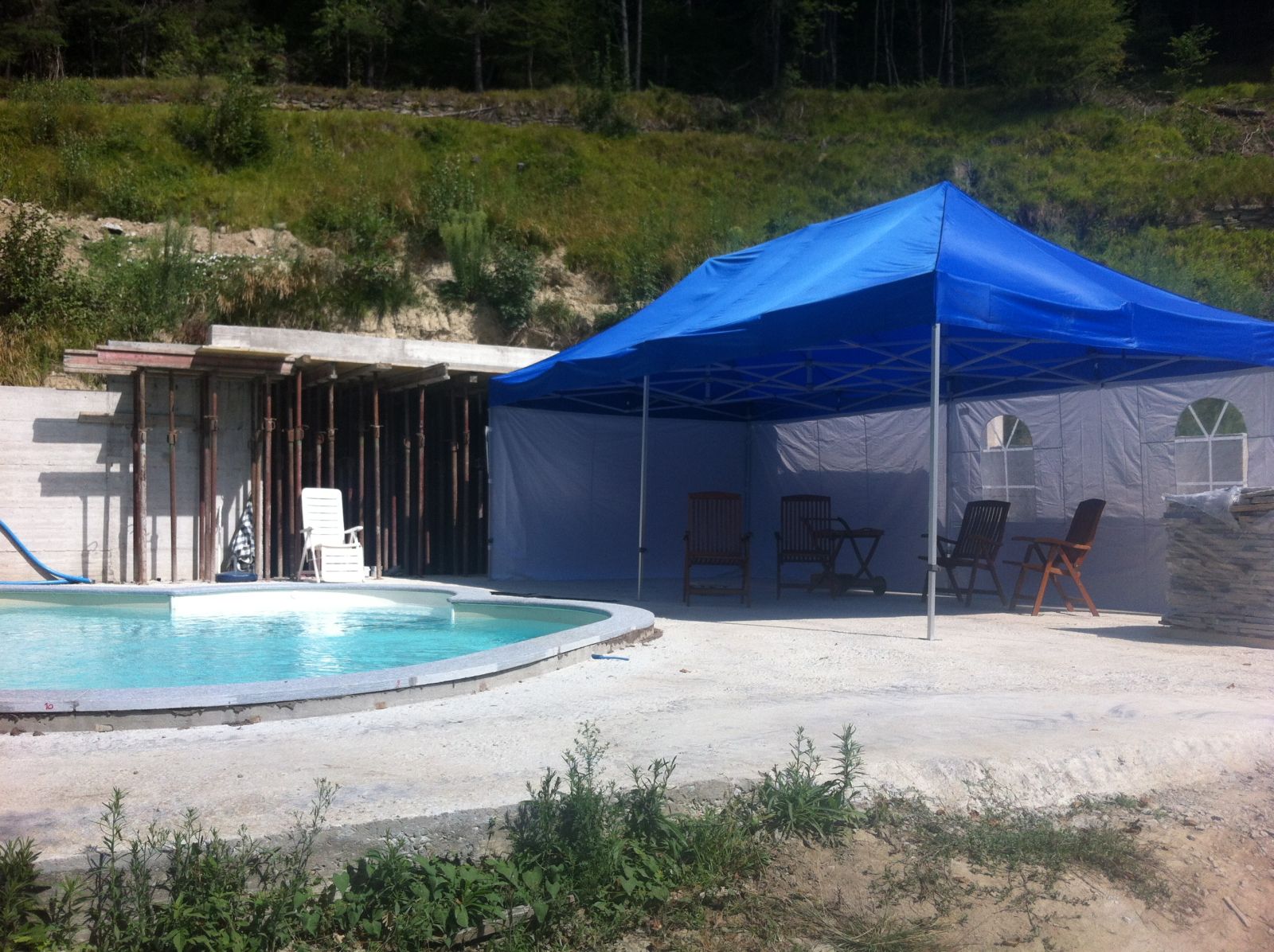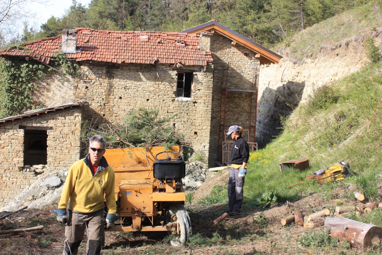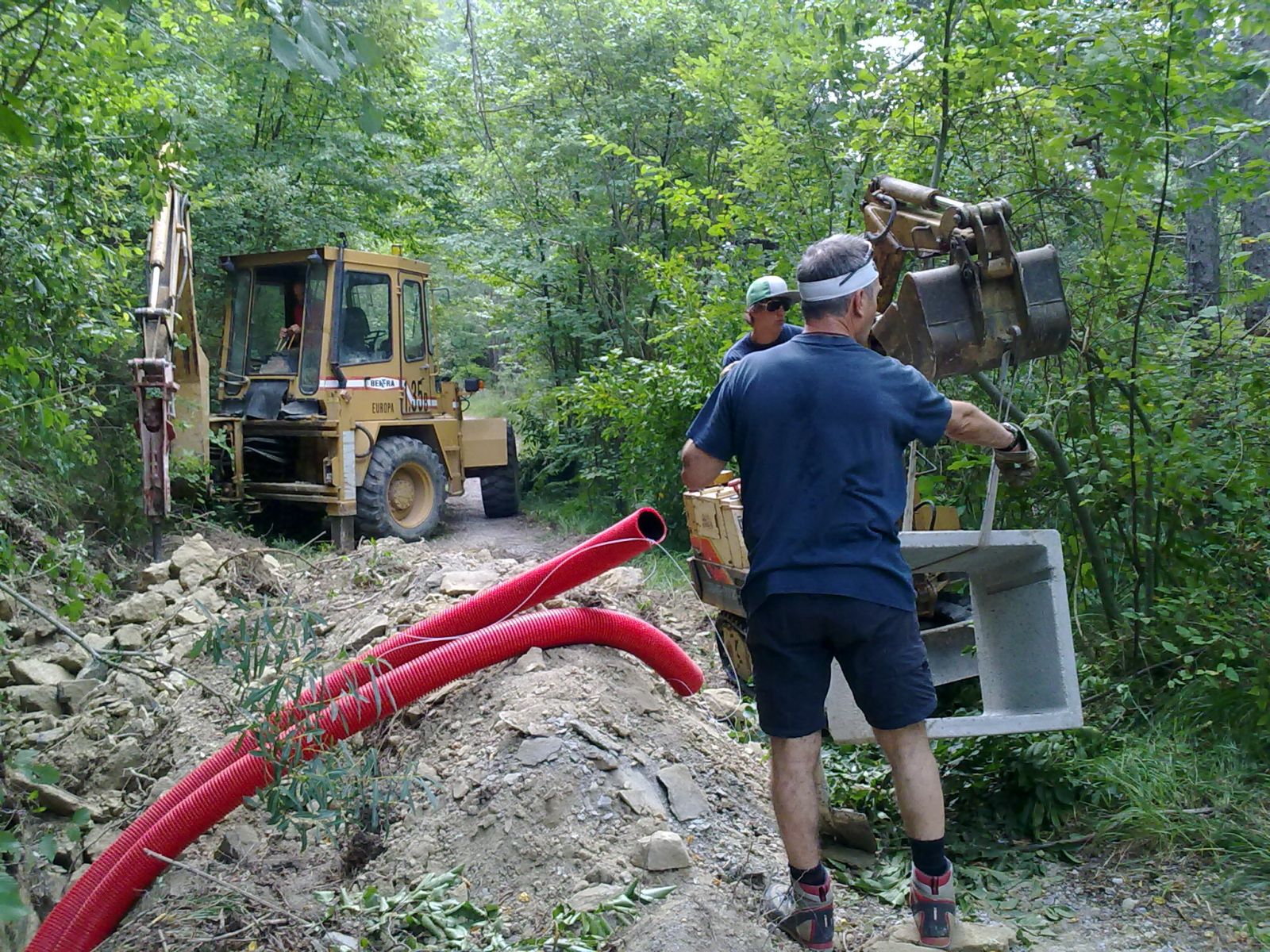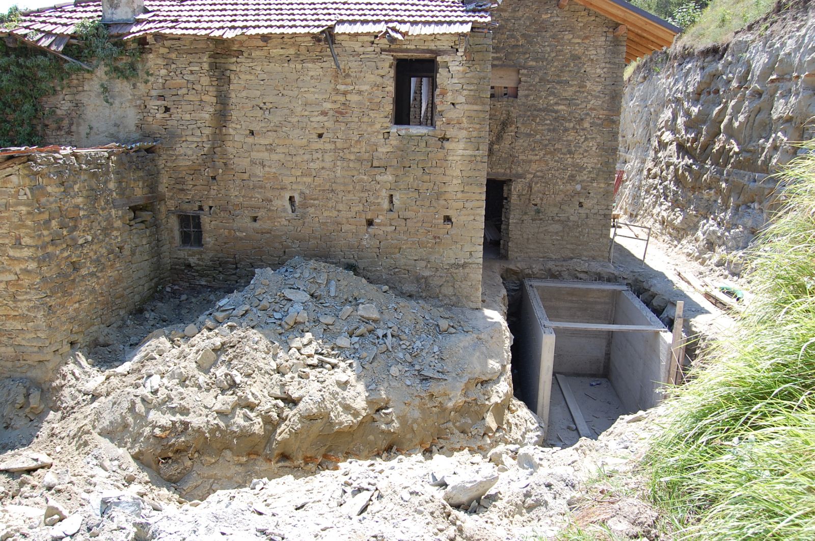 Im Sommer 2010 durfte der erste «eigene» Bagger und Dumper ans Werk. Grosszügigerweise durften wir im Haus unserer Nachbarn zwei Wochen Arbeits-Ferien verbringen, sodass wir ganz nahe bei unserer Baustelle weilten.