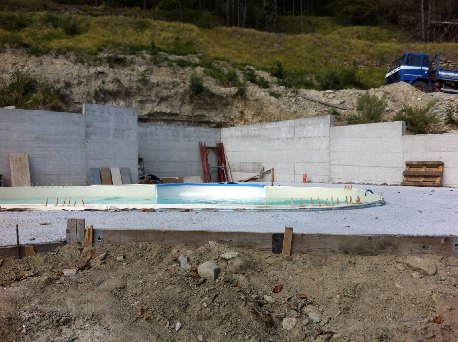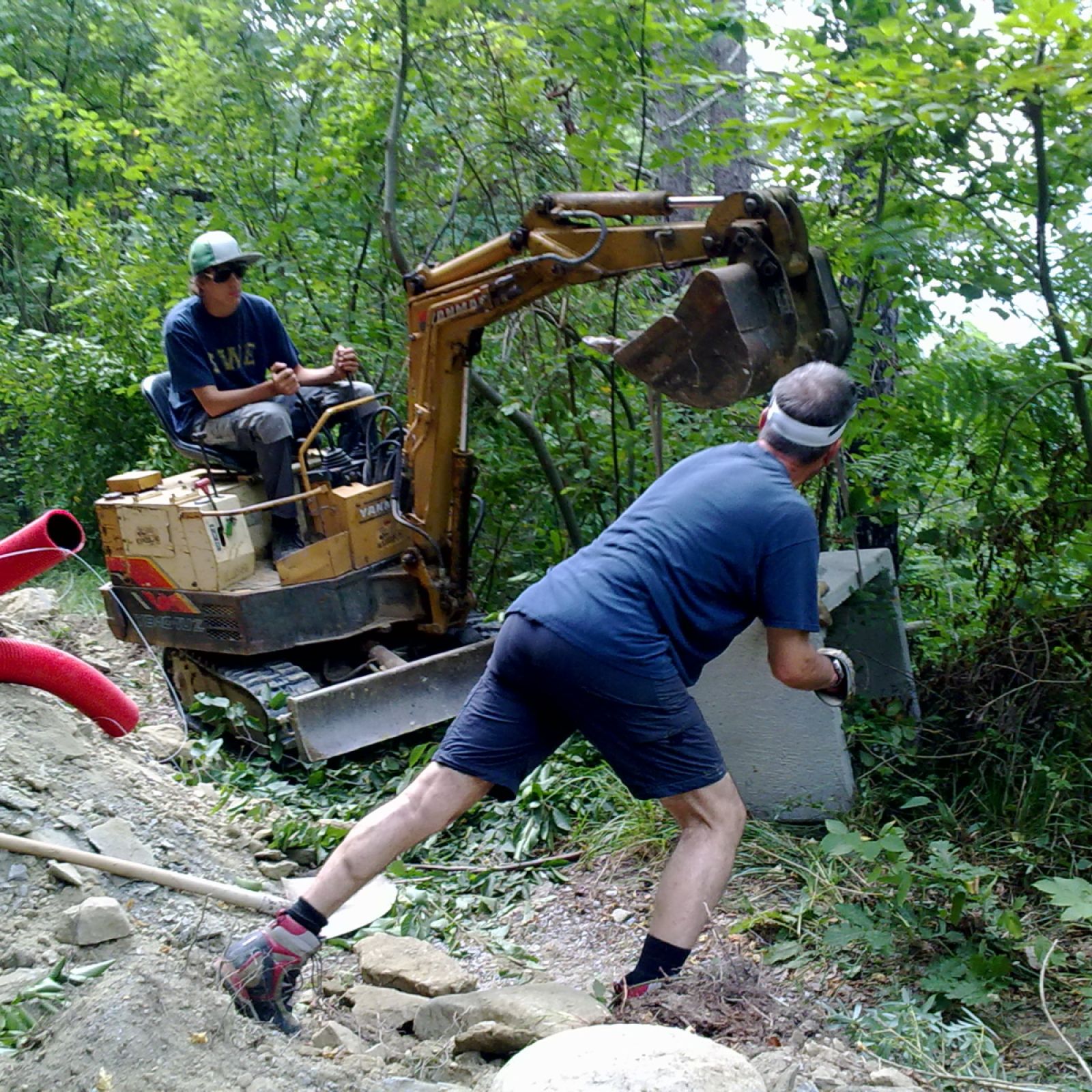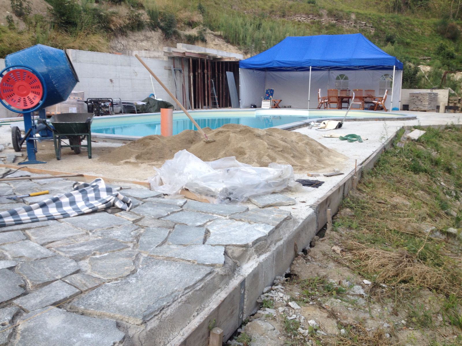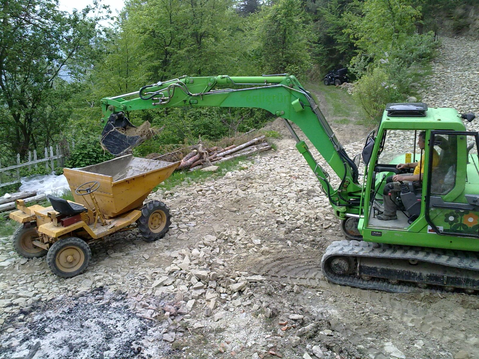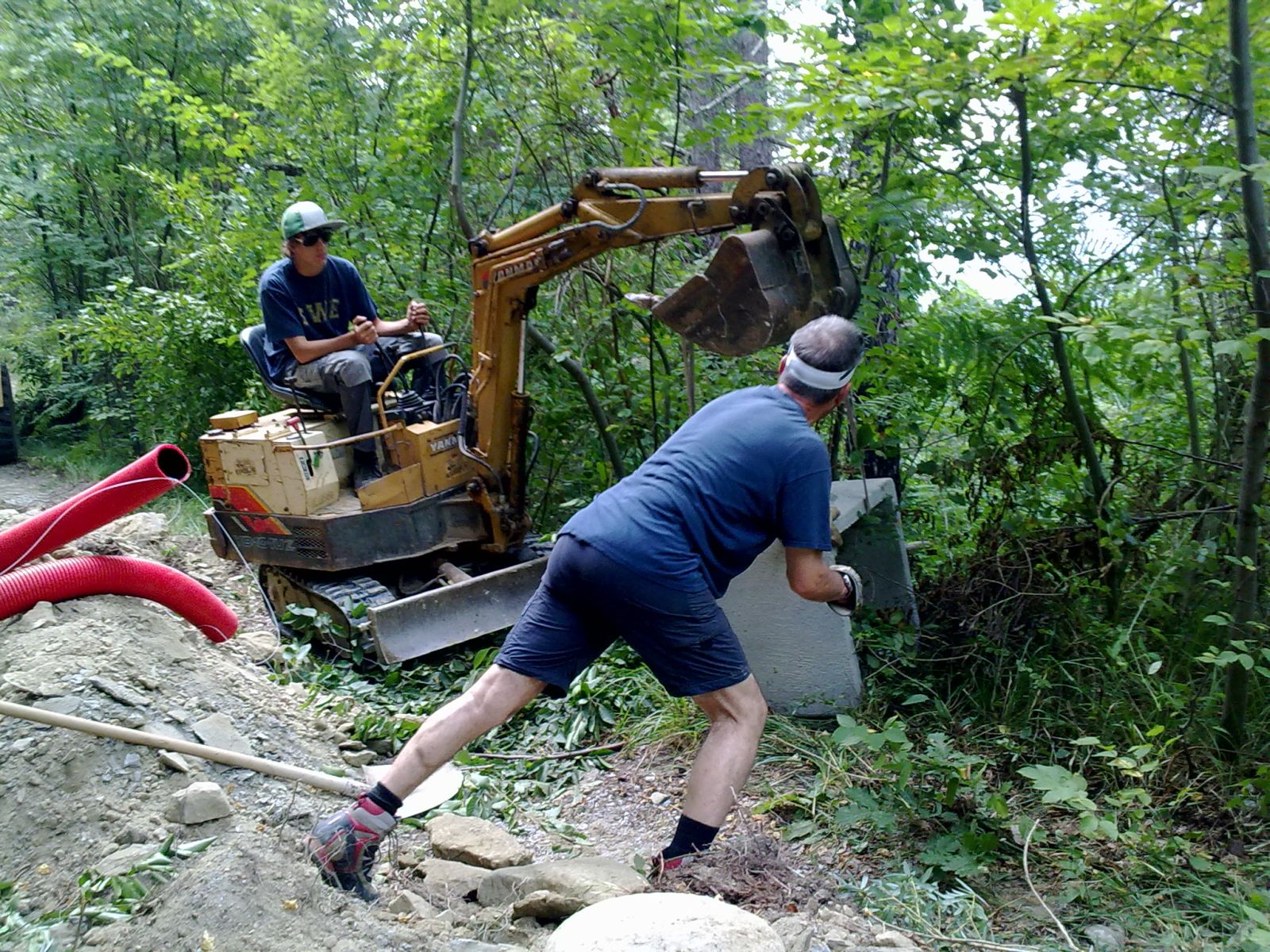 Im Sommer 2010 durfte der erste «eigene» Bagger und Dumper ans Werk. Grosszügigerweise durften wir im Haus unserer Nachbarn zwei Wochen Arbeits-Ferien verbringen, sodass wir ganz nahe bei unserer Baustelle weilten.