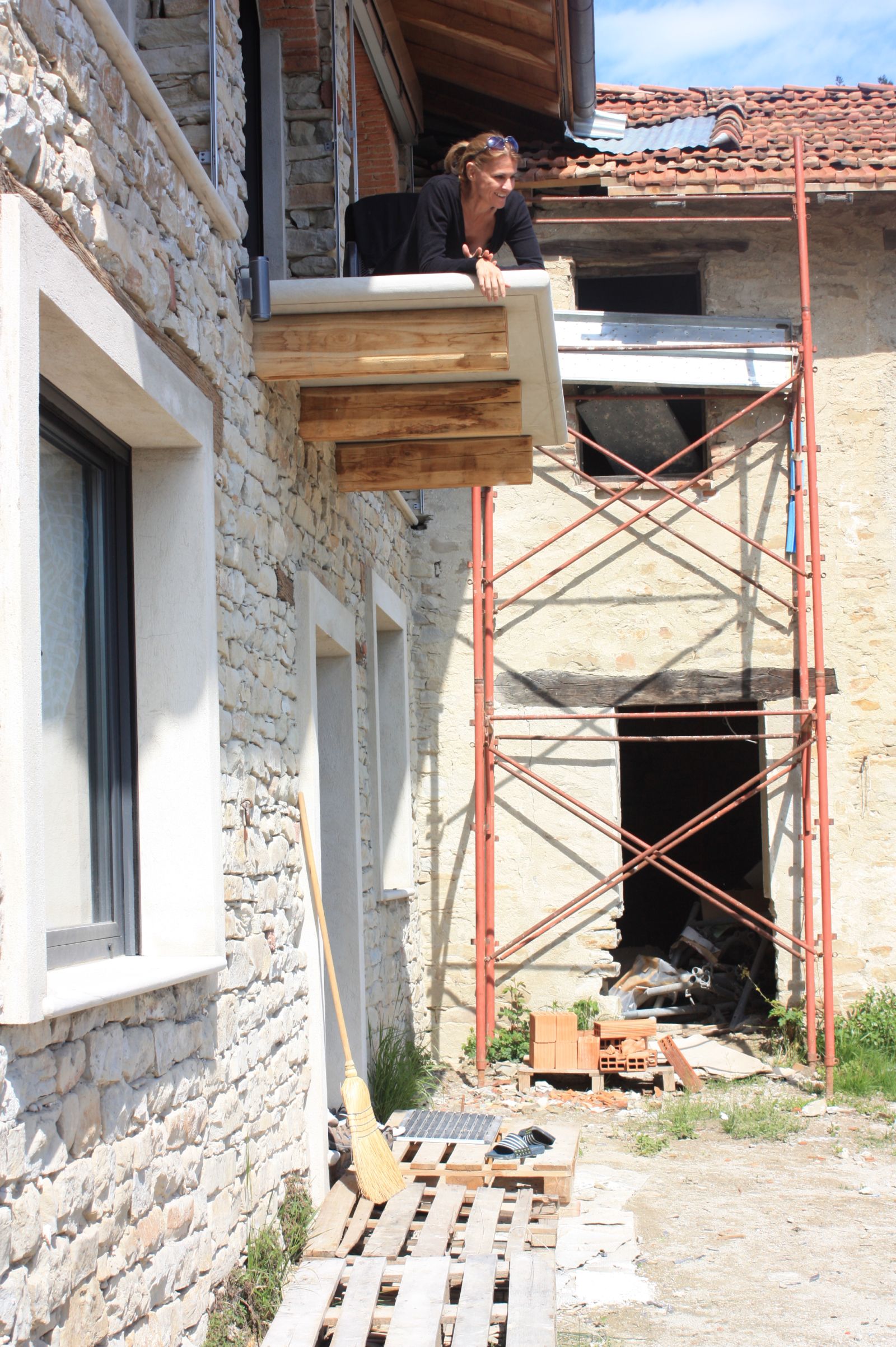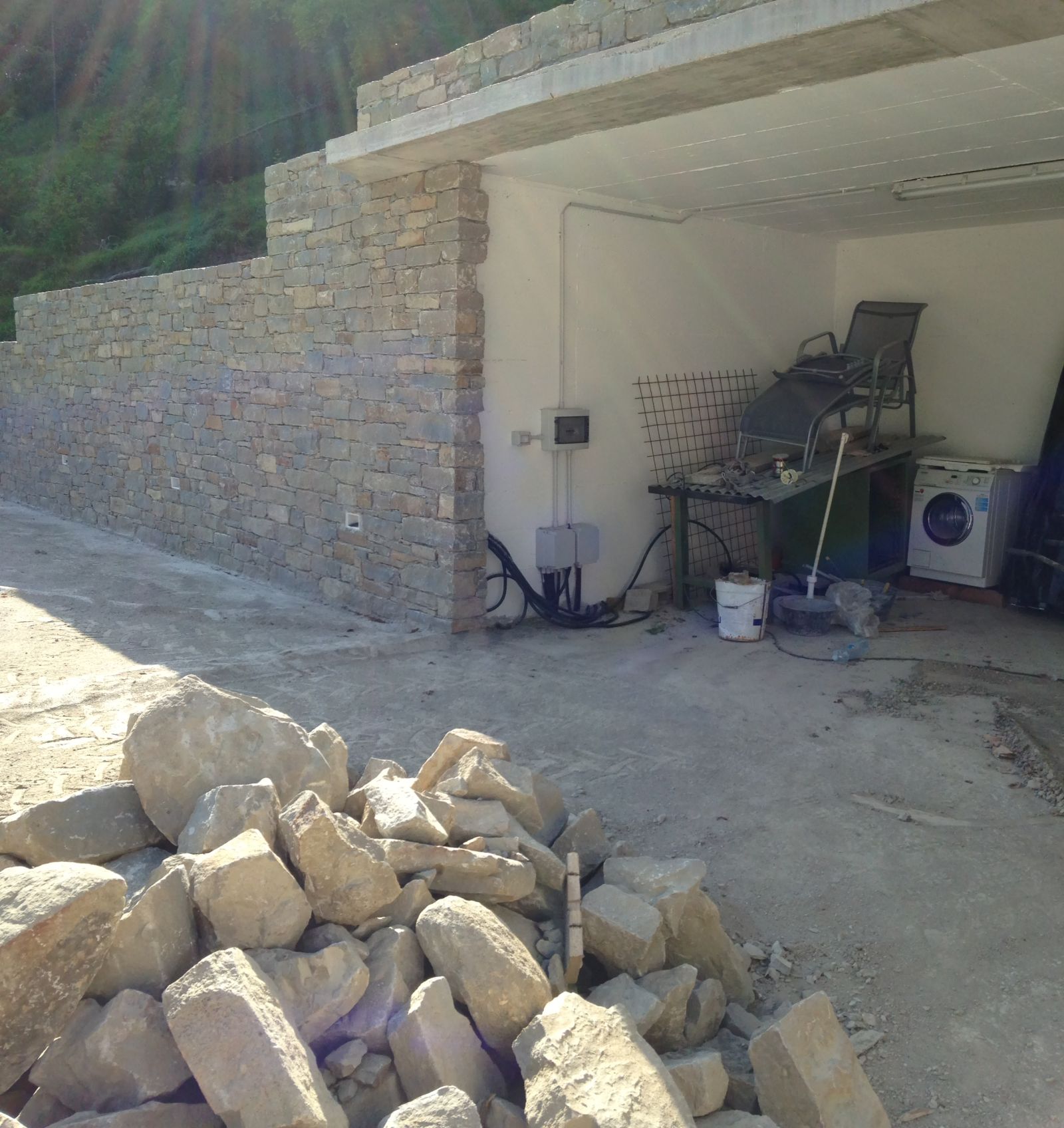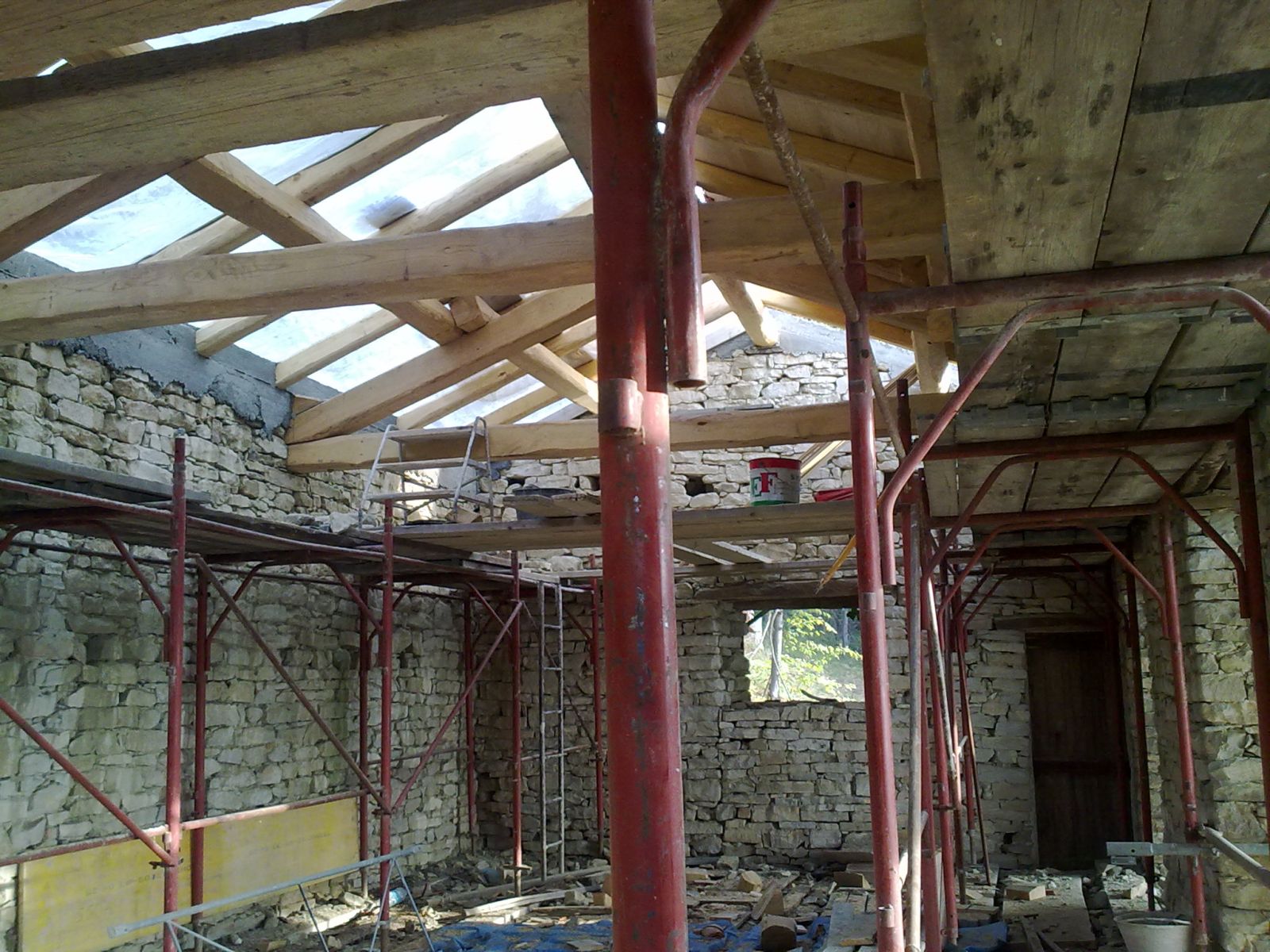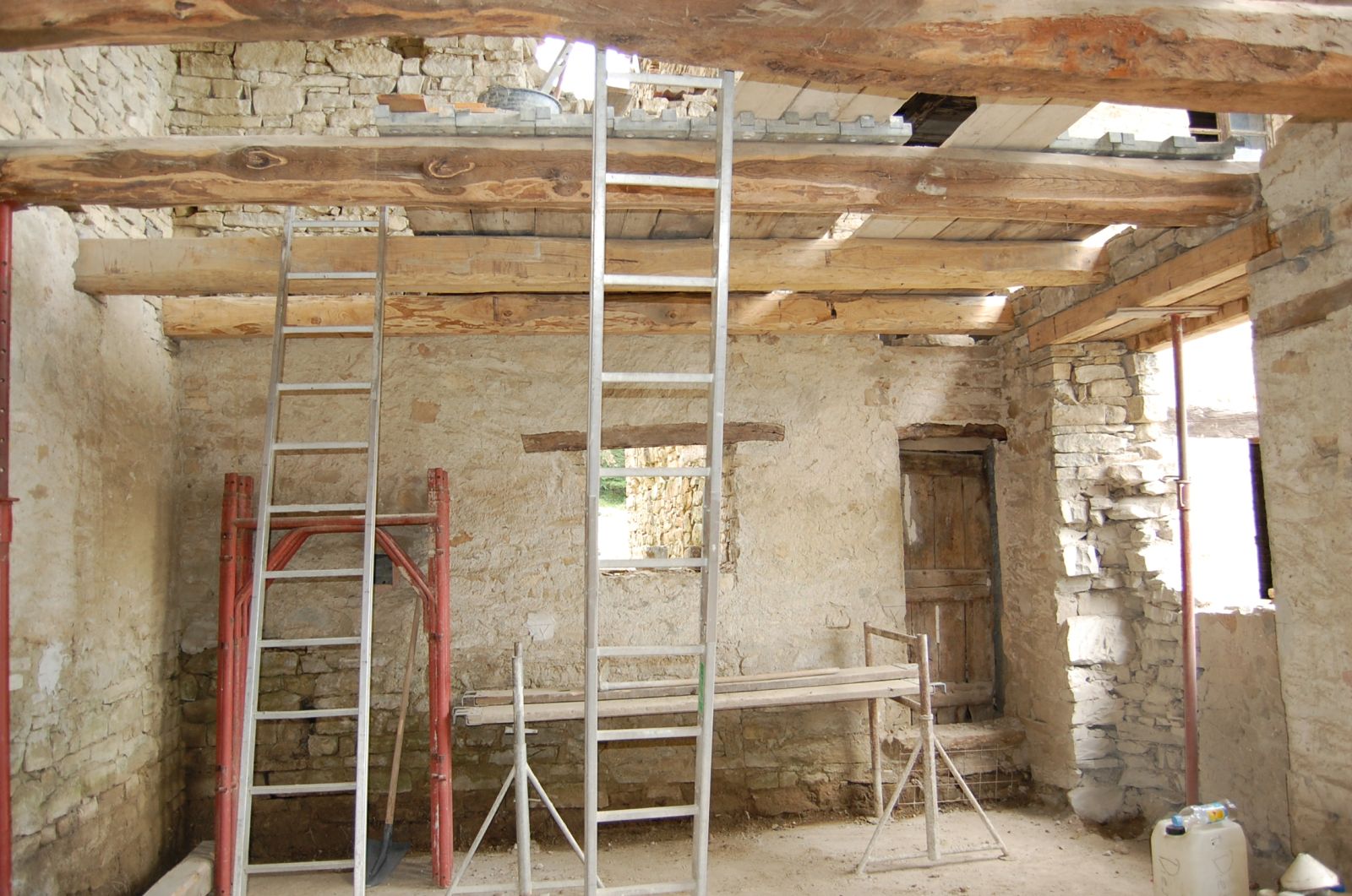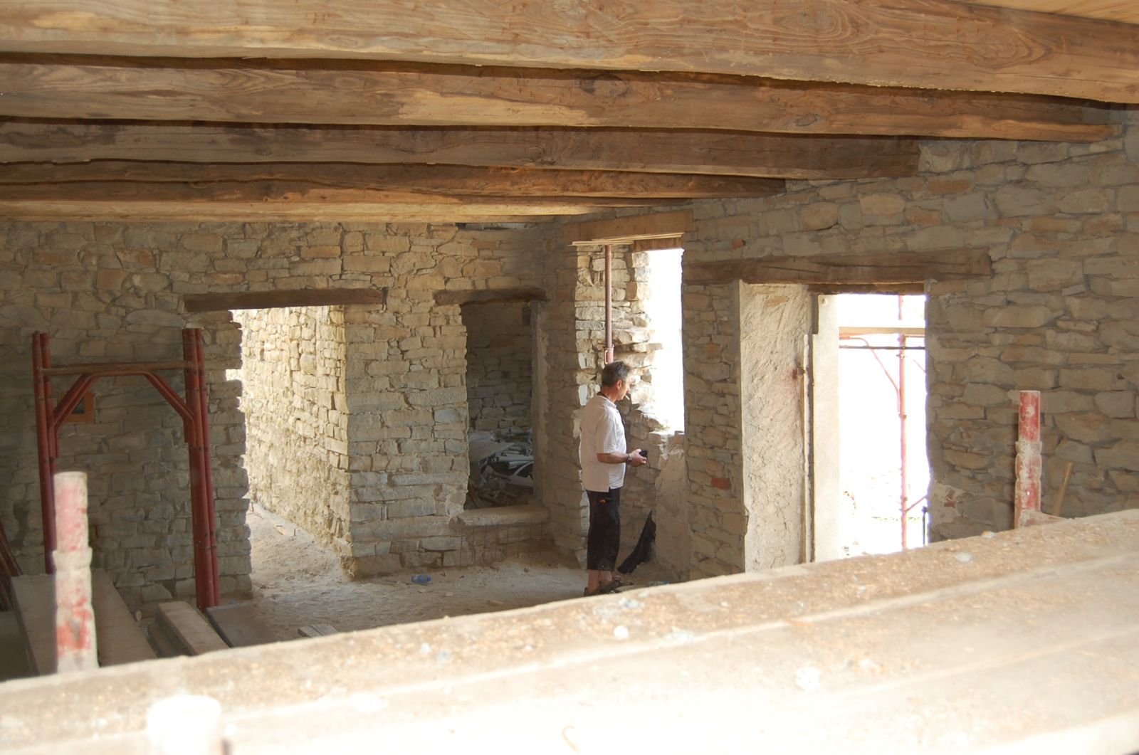 2011 auch im Innern wird geschuftet, gehämmert, gesägt und betoniert. Das erste Gerüst wird gestellt und Rumpelstilzchen tanzt um seine Feuerstelle. Im Herbst dann der erste Möbelwagen vollgepackt Richtung Süden.
