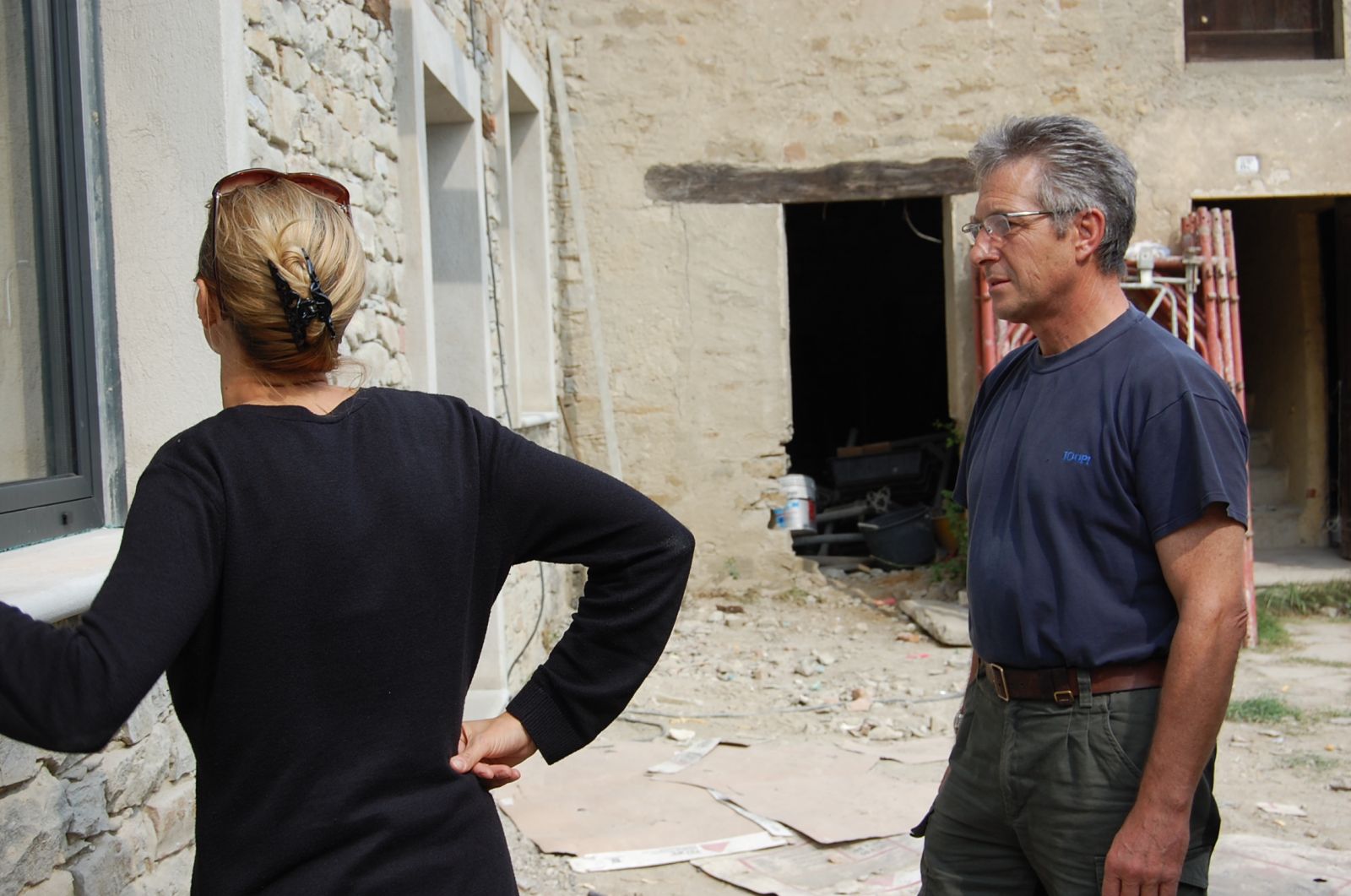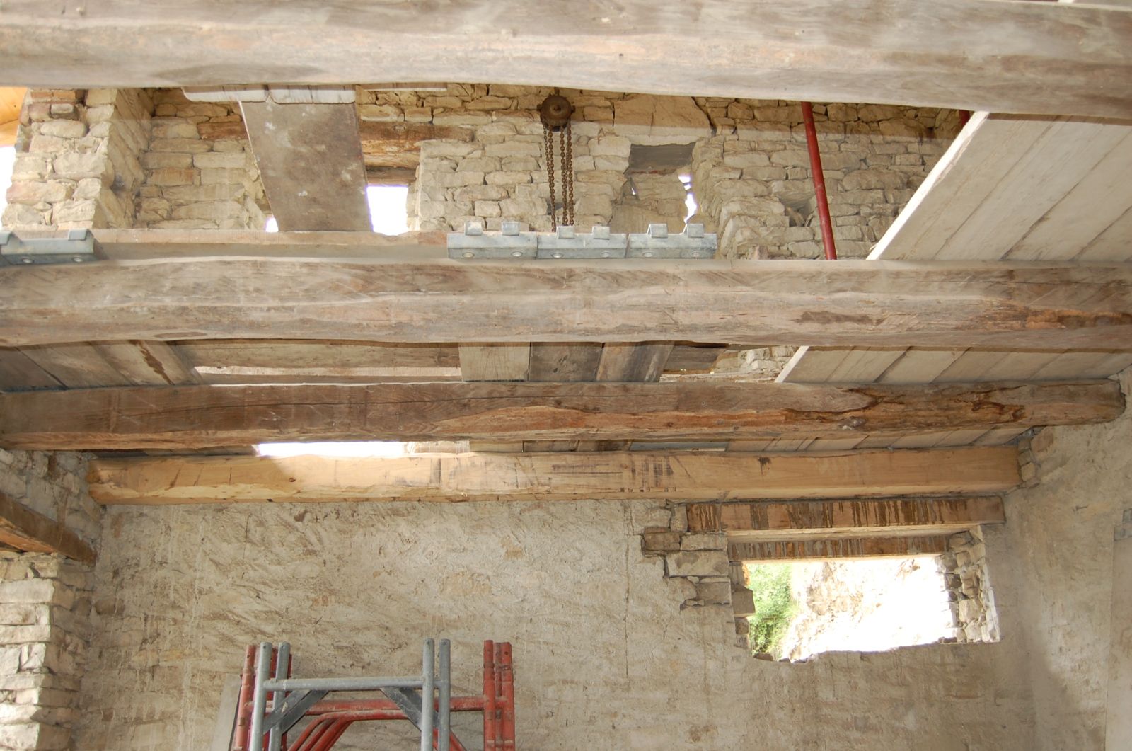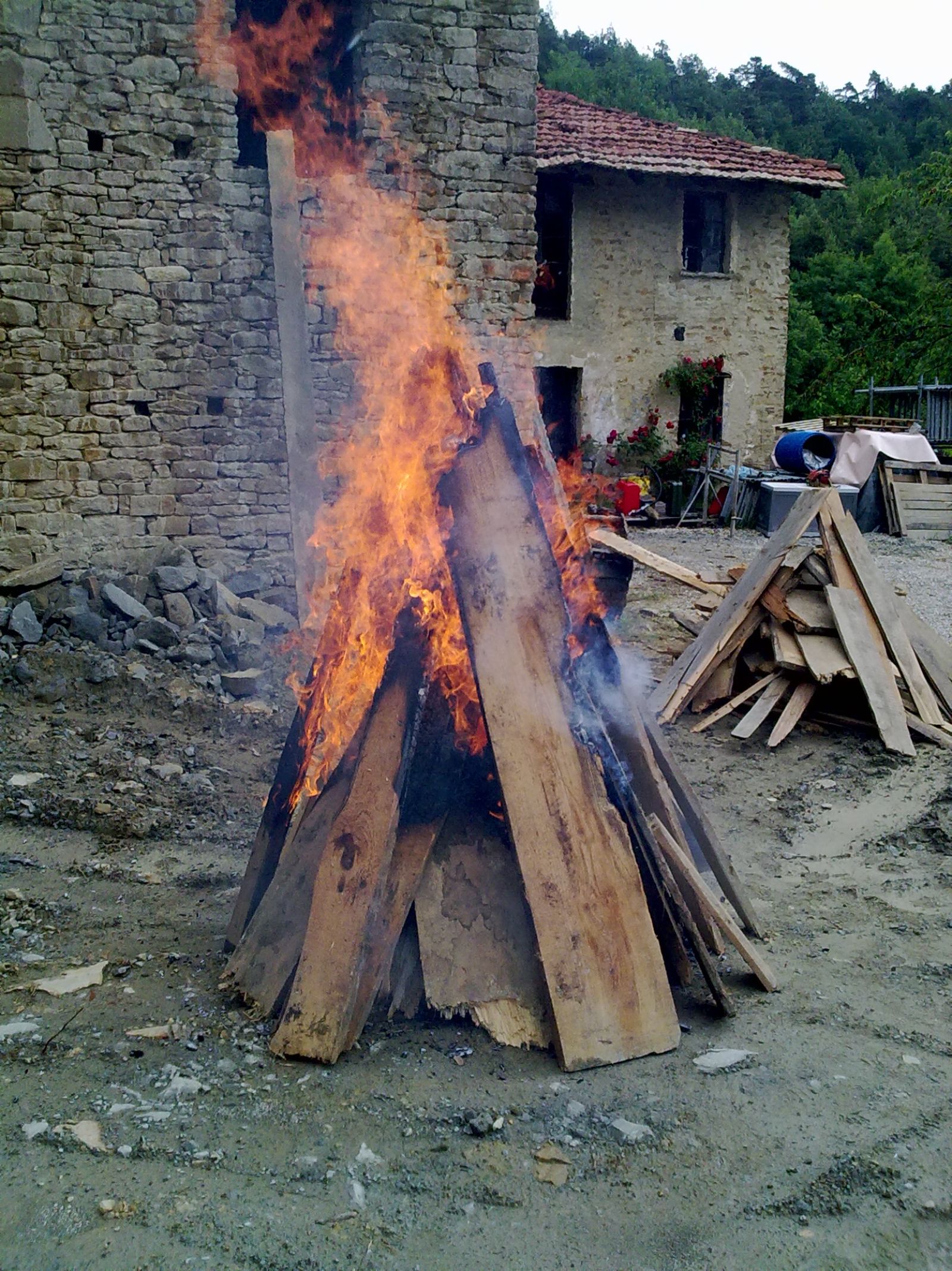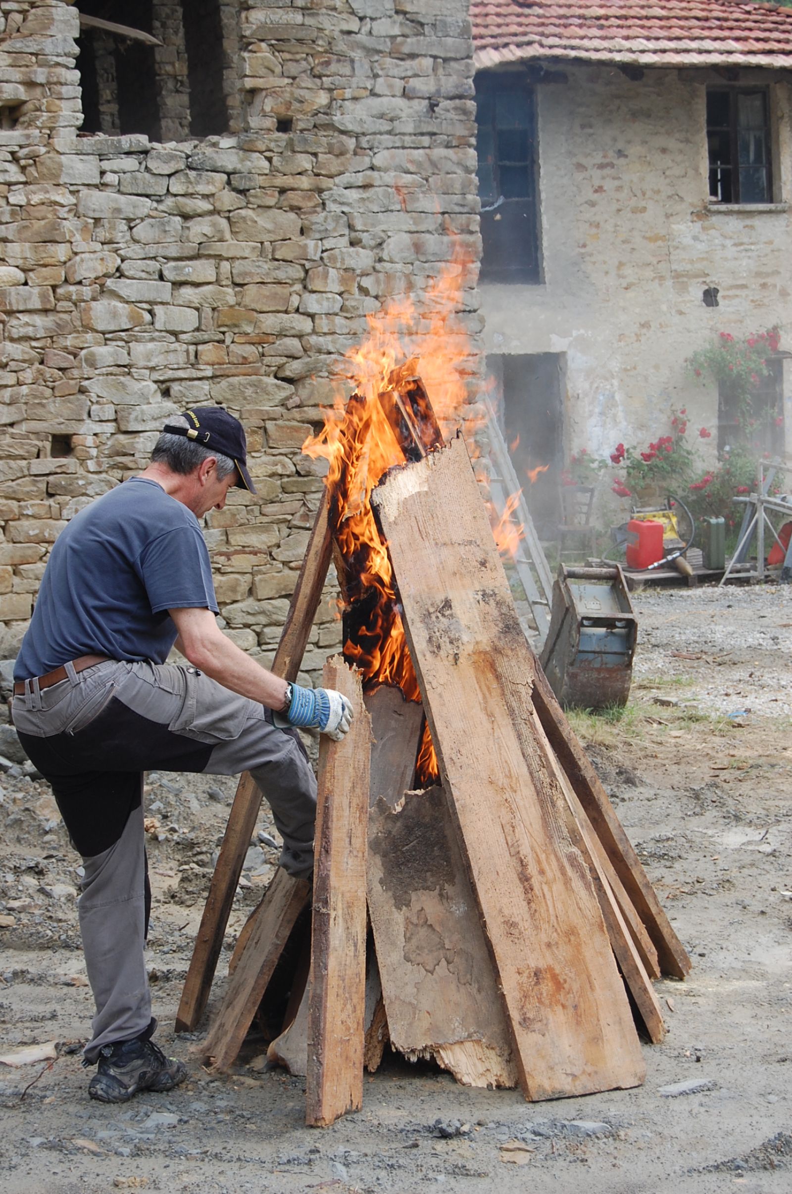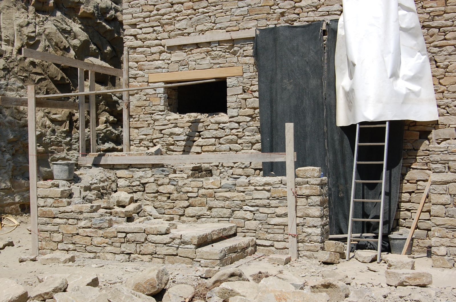 2011 auch im Innern wird geschuftet, gehämmert, gesägt und betoniert. Das erste Gerüst wird gestellt und Rumpelstilzchen tanzt um seine Feuerstelle. Im Herbst dann der erste Möbelwagen vollgepackt Richtung Süden.