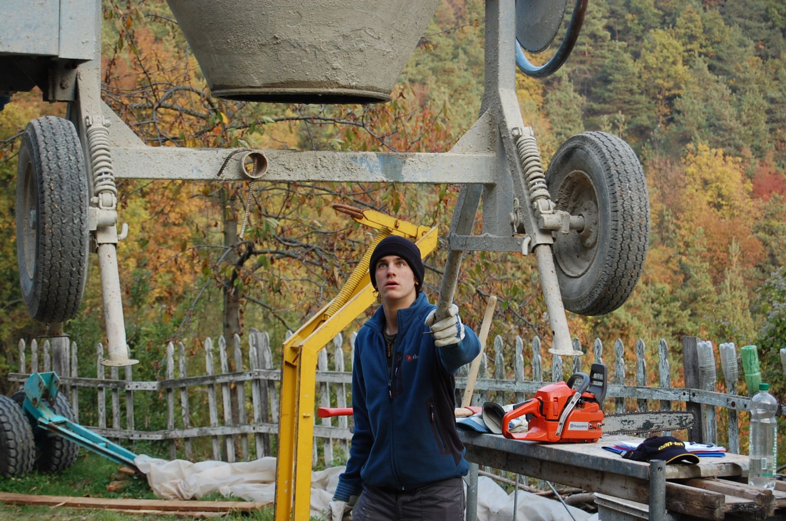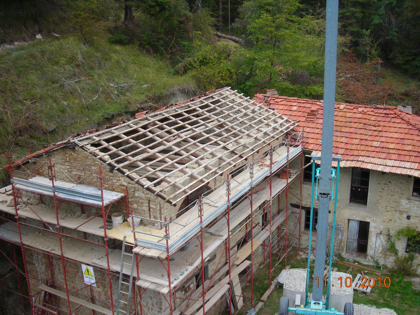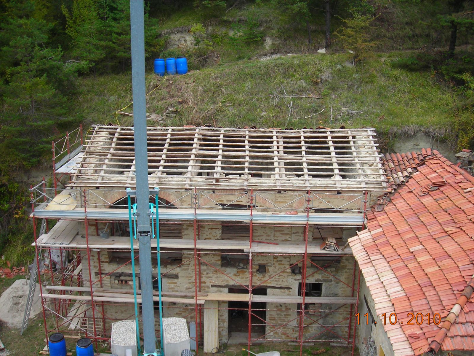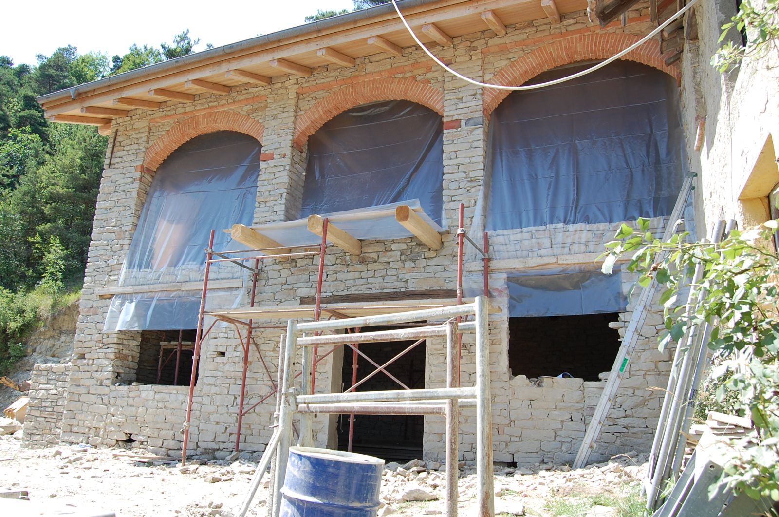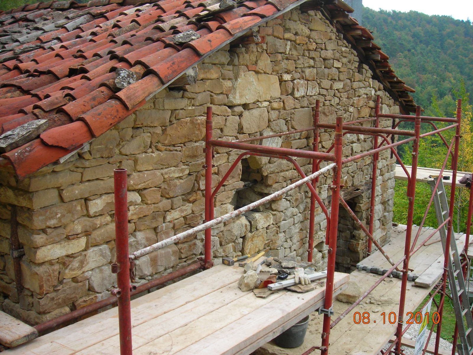 2011 auch im Innern wird geschuftet, gehämmert, gesägt und betoniert. Das erste Gerüst wird gestellt und Rumpelstilzchen tanzt um seine Feuerstelle. Im Herbst dann der erste Möbelwagen vollgepackt Richtung Süden.