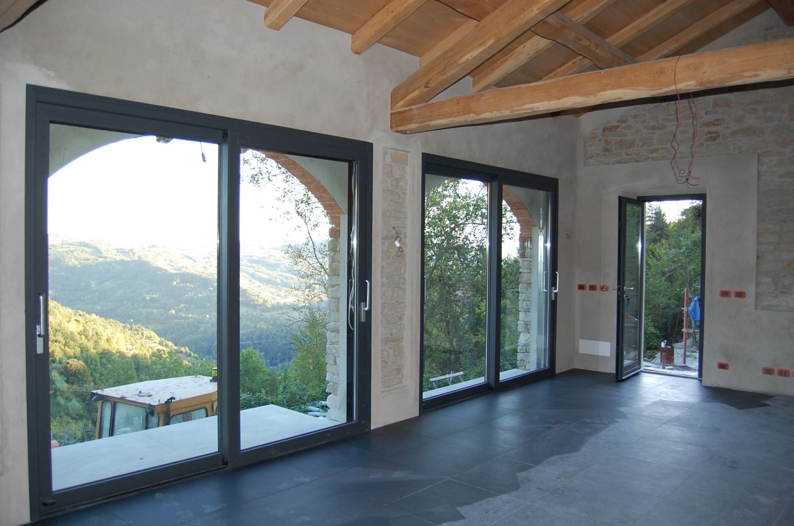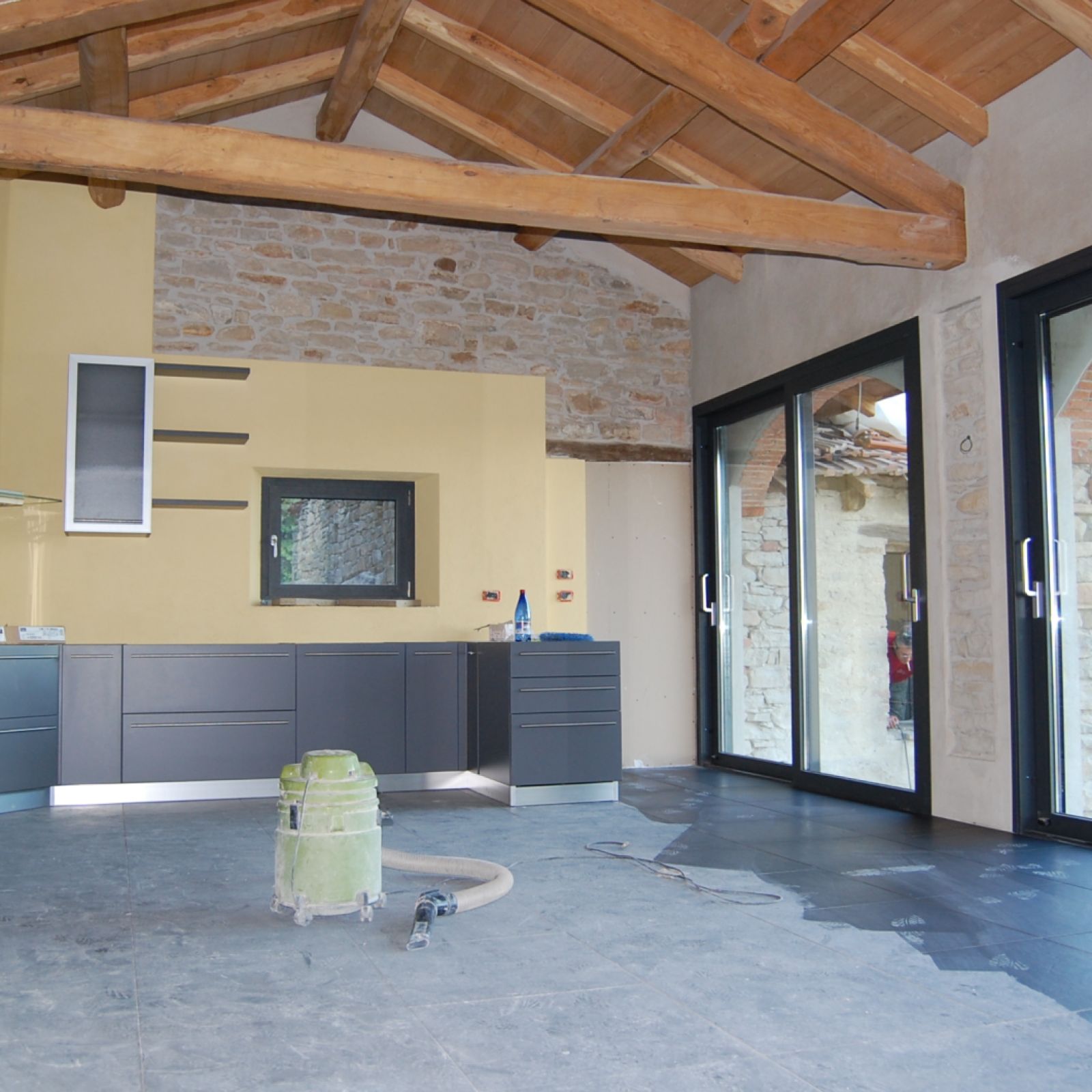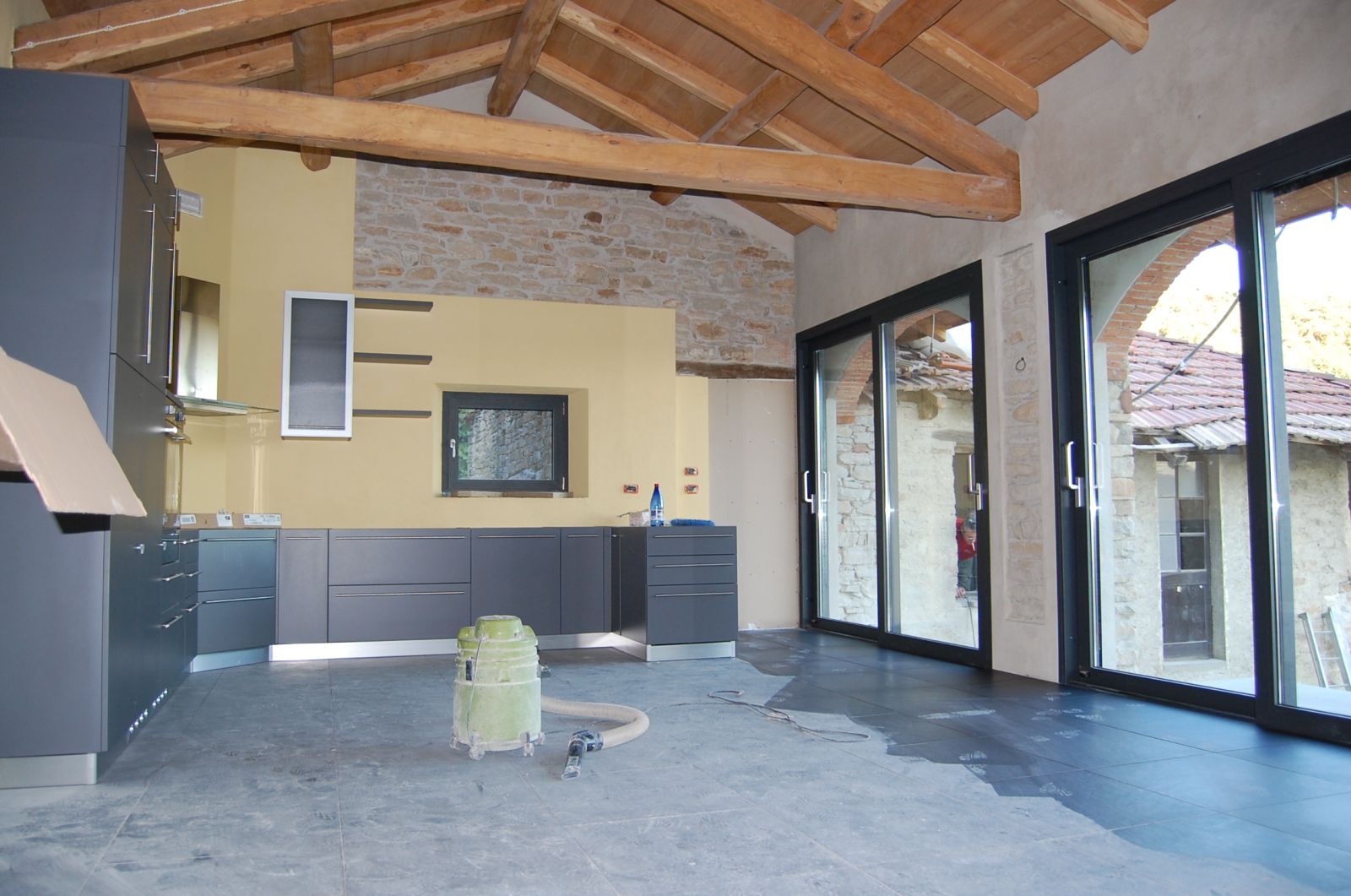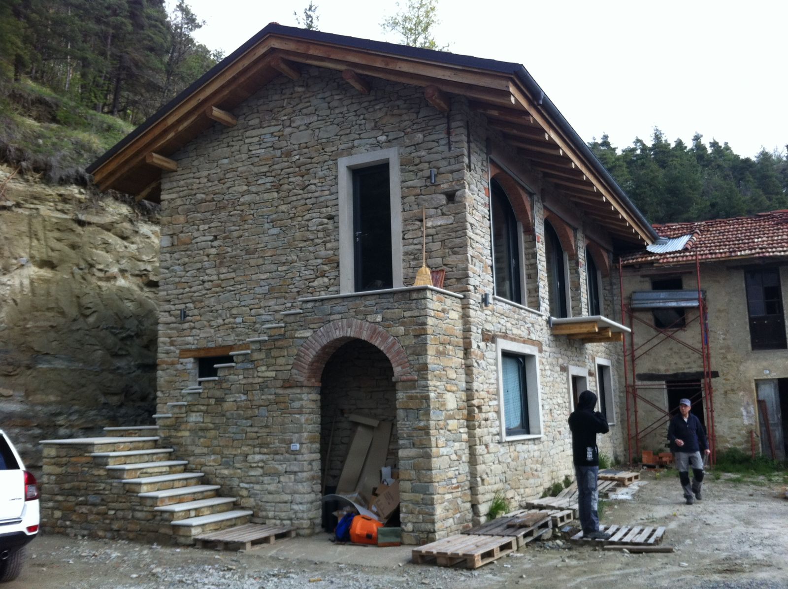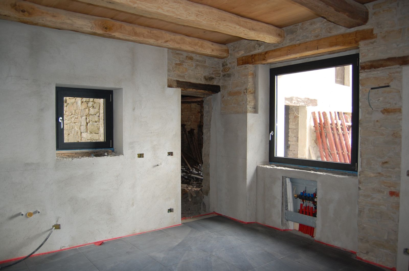 2011 auch im Innern wird geschuftet, gehämmert, gesägt und betoniert. Das erste Gerüst wird gestellt und Rumpelstilzchen tanzt um seine Feuerstelle. Im Herbst dann der erste Möbelwagen vollgepackt Richtung Süden.