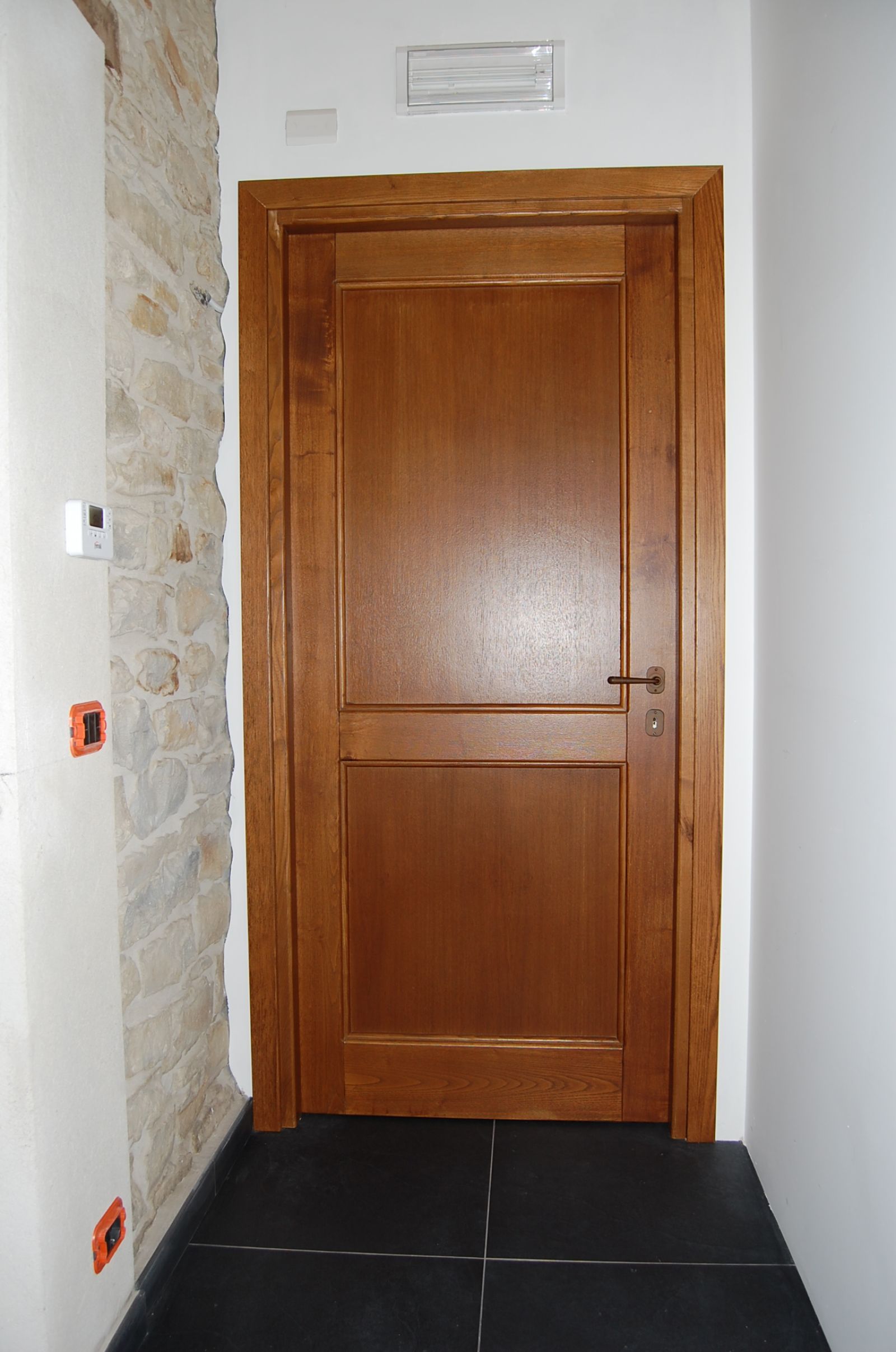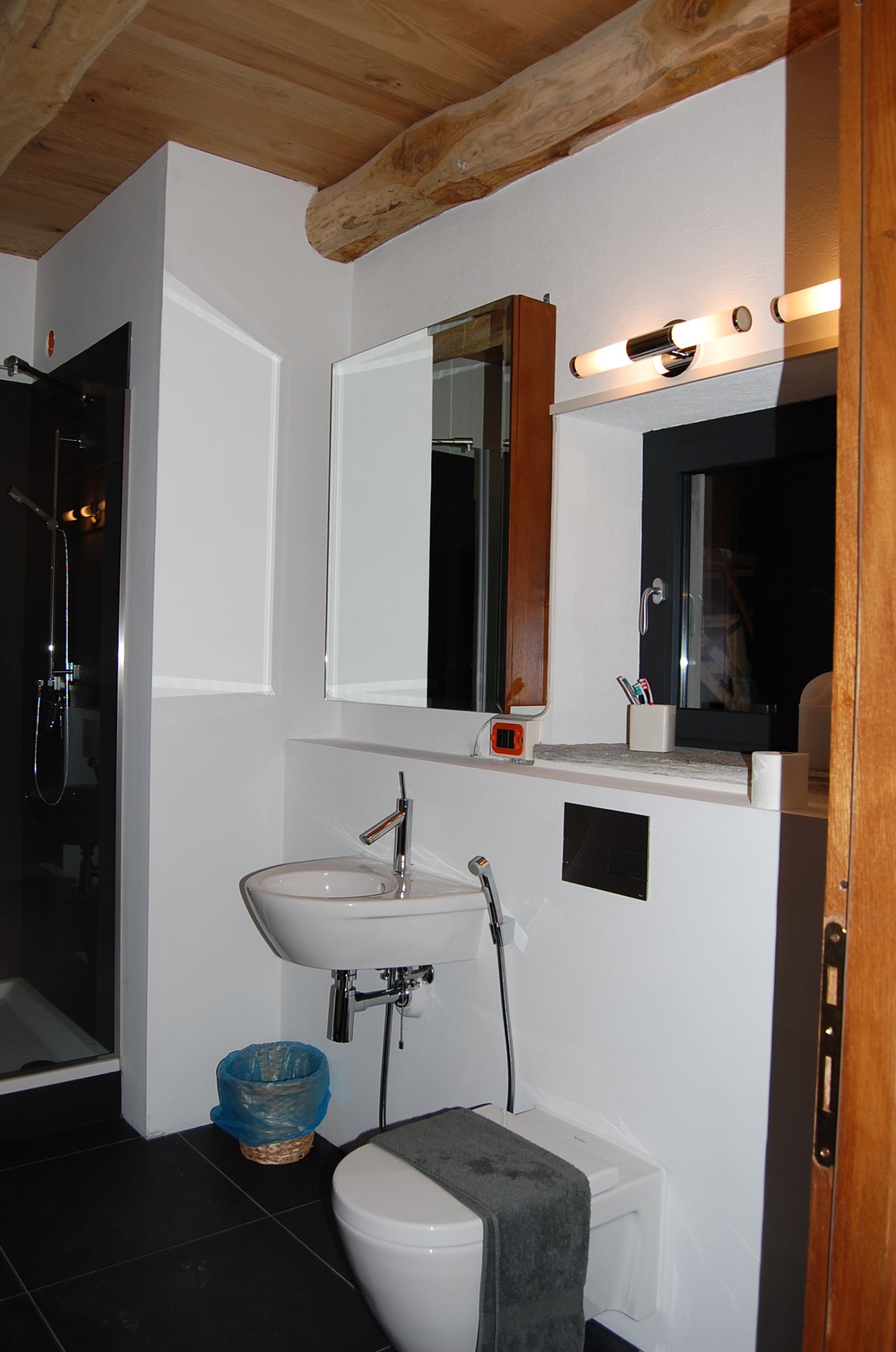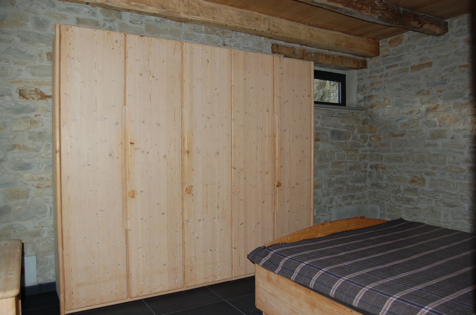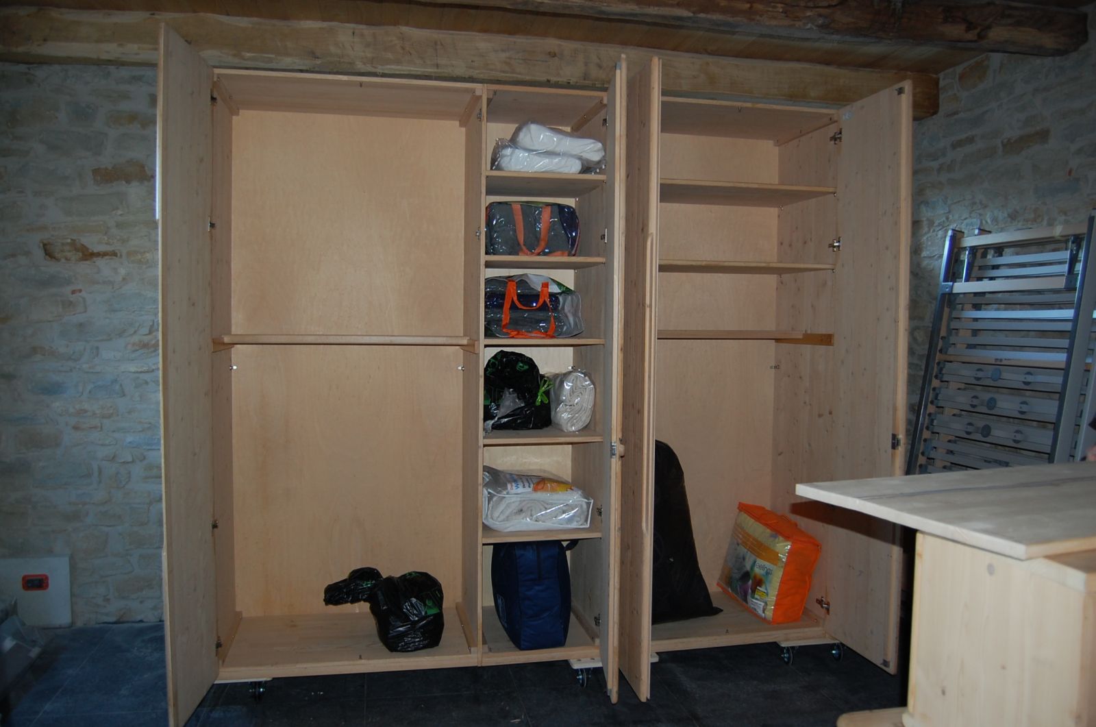 Schränke, Betten, Tisch und Stühle werden aufgestellt und Lampen montiert aber am wertvollsten ist der herrliche Ofen oder wie man bei uns sagt; das Chemineé