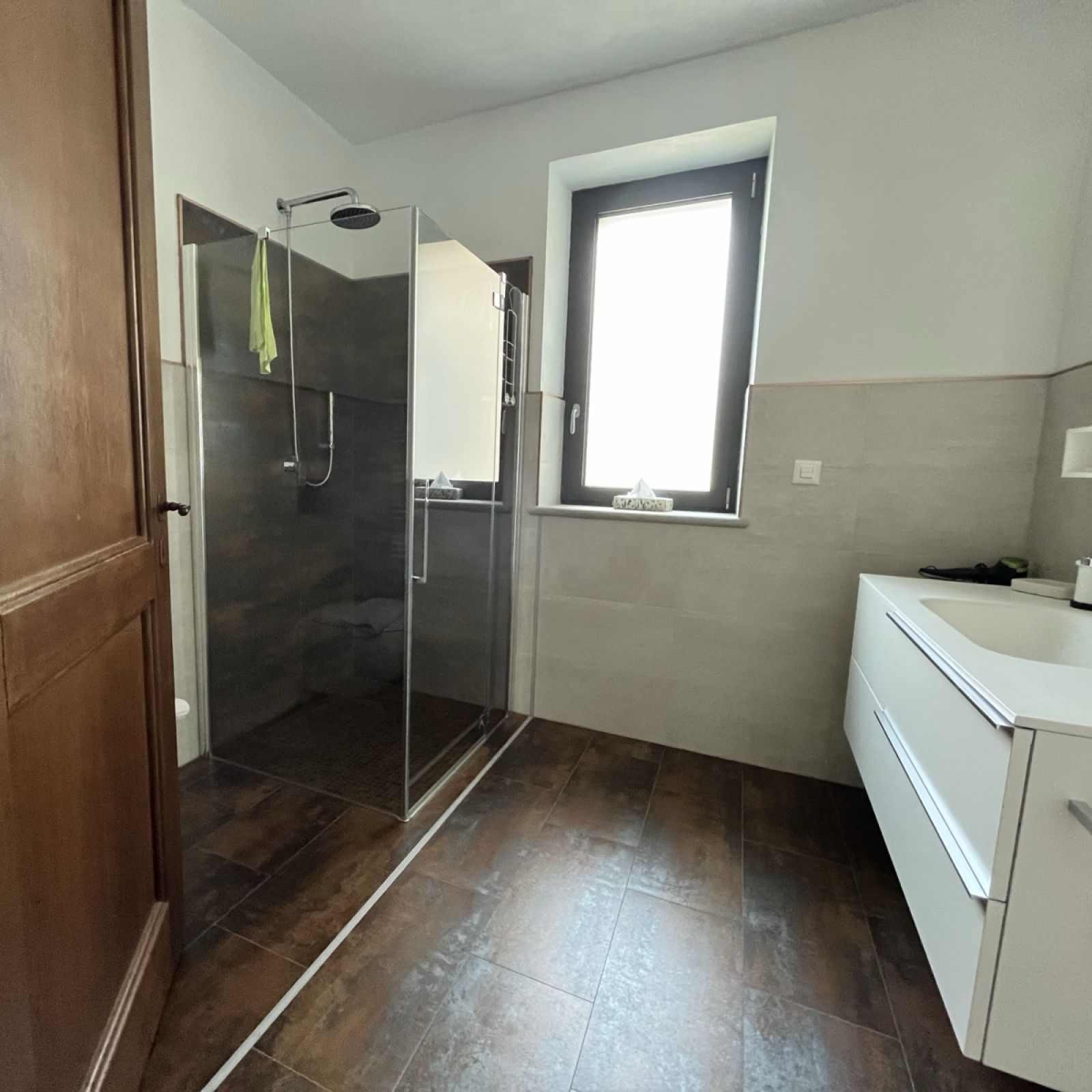 Die Duschkabinen nach dem Duschen trockenreiben, Duschtüre geschlossen hatlen! Sparsame Nutzung des Wassers!